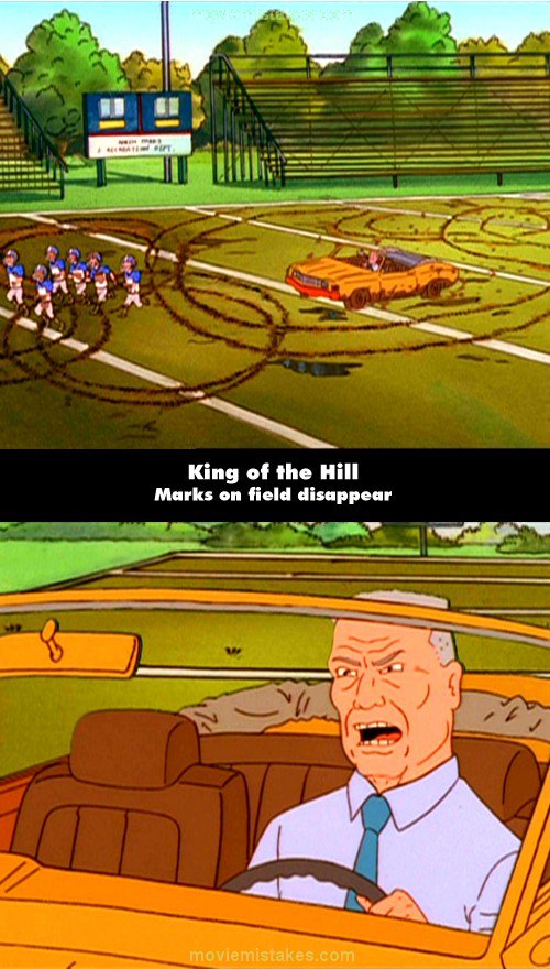 Continuity mistake: When Coach Sauers is trying to run over the football players with his car on the football field, there are a lot of track marks on the field. There is then a tracking shot of Sauers from straight ahead of his car and you can see there are absolutely no track marks whatsoever, on the field behind him. (00:15:30)