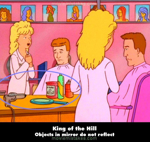Revealing mistake: During Rad's haircut from Luanne, there is a shot that shows the both of them in the mirror. You can see both their reflections and the room in the mirror but the objects on the counter in front of Rad have no reflection.