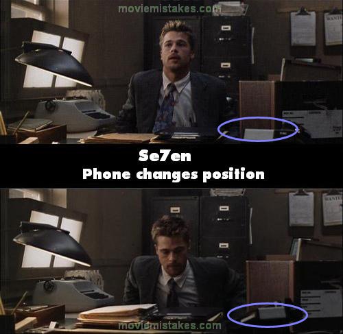 Continuity mistake: The phone on Brad Pitt's desk changes position (parallel to the desk, then angled towards Brad Pitt, then angled away from him) several times when he first goes into his new office. (00:29:50)