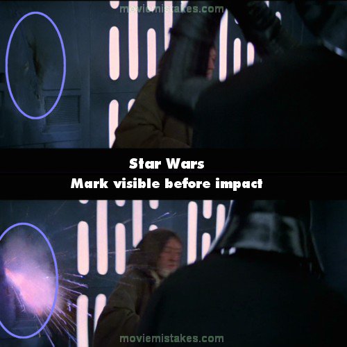 Continuity mistake: During the battle between Obi-Wan and Darth Vader, there's a scorched slash mark on the wall to Obi-Wan's right before either saber makes contact with it. A few seconds later Darth slashes his saber in exactly that spot (we can see the scorch mark again before he hits it). (01:26:50)