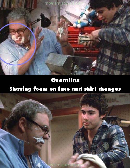 Continuity mistake: When Billy accidently squirts shaving foam onto his father, by use of the bathroom buddy, the foam around Rand's mouth disappears between shots. Foam also appears on his glasses between shots then disappears too. (00:27:15)