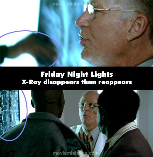 Continuity mistake: When Boobie Miles receives his diagnosis from the Midland doctor, he gets upset and rips the x-ray film of his injured knee off the wall. In the next shot, he rips it down again.