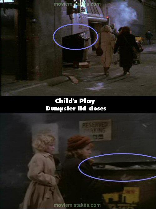 Continuity mistake: When Karen and Maggie go to the peddler in the back alley, as they approach the peddler, the large dumpster behind the peddler has it's lid halfway open. Yet when it cuts to them reaching him, the dumpster is closed. Cardboard boxes piled up to the left of the dumpster also appear between the same shots. (00:11:30)
