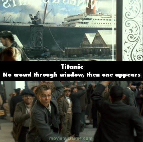 Continuity mistake: When the ship is about to leave the dock, there's a lot of people saying goodbye to the ones that are going to leave the city. In the following shots, you can see Jack and his friends playing cards inside the pub. If you look through the window you won't see anyone. In the next shot, when Jack leaves the pub, the crowd is there again. (00:23:15 - 00:25:05)