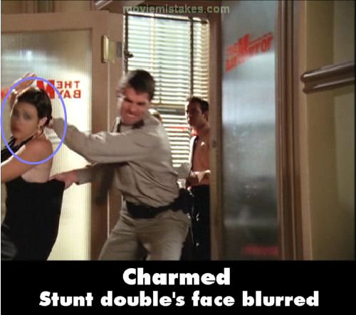 Revealing mistake: When Phoebe is thrown out of the Bay Mirror office by a security guard, Alyssa Milano's stunt double's face is digitally blurred.