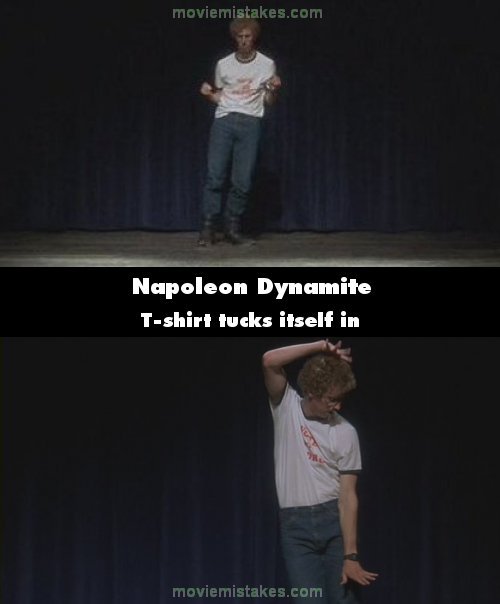 Continuity mistake: When Napoleon starts his dance skit near the end of the movie, his t-shirt is tucked into his pants. Shortly into the skit, the shirt comes loose in the back and on one side. A few seconds later, the shirt is once again completely tucked in. This happens several times throughout the scene. (01:21:30)