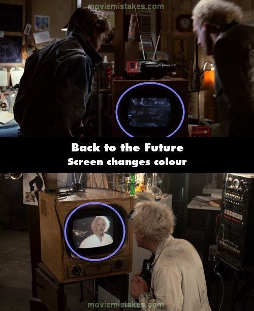 Continuity mistake: When the JVC recorder is first played, the screen on the TV is a blue colour. Later, when Doc is playing the Libyan part again and again, the screen seems to be a brownish colour. (00:50:10 - 01:05:40)