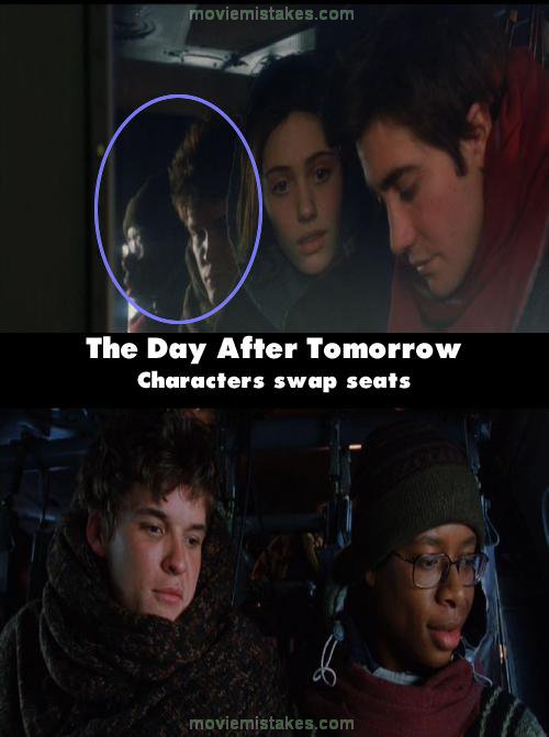 Continuity mistake: At the end of the movie, when they are all in the helicopter, it cuts to a view of them looking out the window. In this shot, the black actor is sitting next to the window, on the other side of the helicopter, but in the following one, he has suddenly switched seats, and is no longer sitting next to the window. (01:49:40)