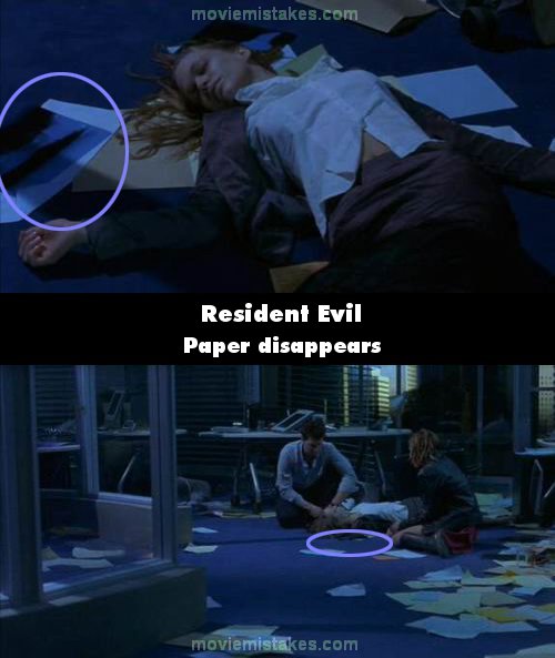 Continuity mistake: When zombie Lisa lies dead on the floor her hair and the papers she lies on change position between the shots. (00:50:55)