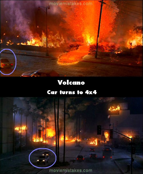 Continuity mistake: When the lava first comes out of the Tar Pits near the beginning, two cars drive past it. In the next shot a bit further away, one of the cars on the left is now a 4x4, which was not in the previous shot. (00:38:40)