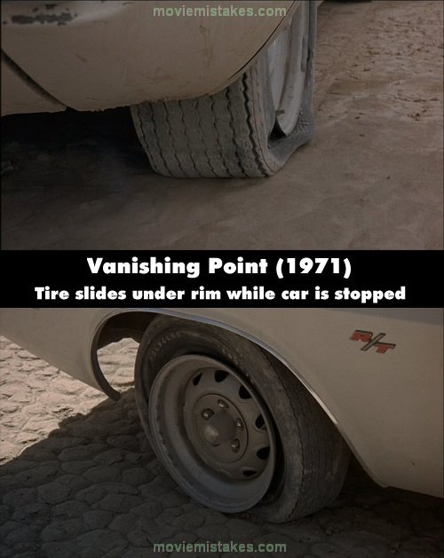 Continuity mistake: When the main character is driving around in the desert, he gets a flat tyre on the left front. The camera shows the tire with the rim down on the sidewall of the tyre. After the driver gets out of the car, the camera shows the tyre again, but this time the rim is down on the sand.