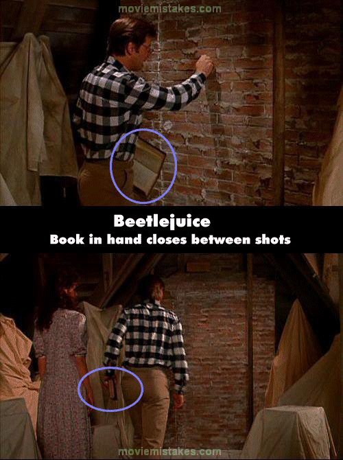 Continuity mistake: After Adam has drawn the chalk door on the wall, he walks forward and closes the “Handbook for the Recently Deceased.” In the next shot, as he knocks on the chalk door three times, the handbook is now open. In the next shot as he steps back, the handbook is now closed again. (00:26:20)