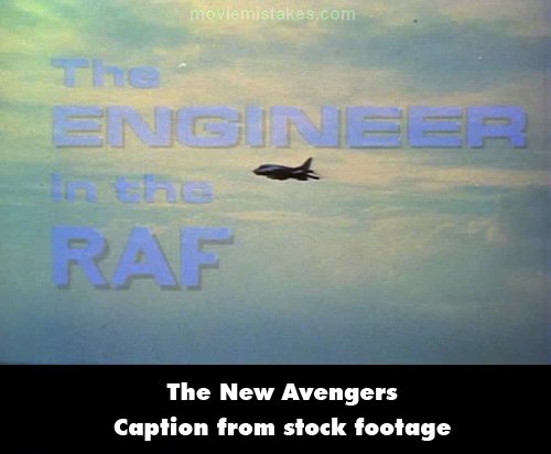 Revealing mistake: Our heroes arrive at an RAF base. Purdey hears a loud aircraft noise and looks up to the sky - cut to shot of a fighter jet. For a few frames after the cut, a caption that reads "The Engineer in the RAF" is just visible. It would seem they 'borrowed' some material from an RAF training film. (Indeed, a later shot of shells exploding was obviously taken from a videotaped TV programme, judging by the 'lag' effect caused by the tube camera that would've been used).