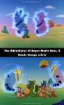 Continuity mistake: When Mario frees himself from a pipe creature, it is the purple pipe creature, but in the next shot, it is the blue one. (00:08:55)