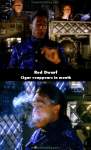Revealing mistake: When Rimmer is typing on the keyboard, what he is saying does not match what he is typing. He is typing randomly. (00:12:20)