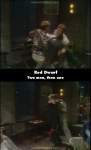 Revealing mistake: The scene where the pub manager comes backstage to yell at Rimmer and Kryten was filmed, and then reversed to appear as if he was yelling backwards. Rimmer blinks when he is being yelled at, and due to the scene being played in reverse, his facial movements appear reversed, even though he is supposed to be moving forwards. (00:22:00)