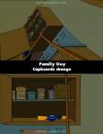 Continuity mistake: When Stewie is acting like a ninja to get his gun back it is in a cupboard with 2 shelves. Yet when the gun is lifting him up there's only one. (00:09:40)