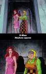 Continuity mistake: When Jubilee, Gambit, and Storm are first shown in their bungalow, there is a coffee table with a couple cups near the edge on the viewer's right, and some magazines on the top corner of the same side. A couple of shots later, the cups and magazines have all moved closer to the center of the table. When Gambit sits up, the magazines have disappeared entirely. (00:19:14)