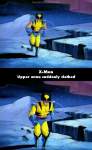 Continuity mistake: When Gambit is asking Xavier why the X-Men must all die to save Senator Kelly, the top of Wolverine's mask is incorrectly colored blue. A few shots later, this portion of the mask is correctly colored yellow, but then the portion of his mask by his right cheek is also yellow, when it should be black. (00:09:48)