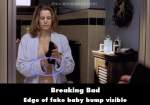 Revealing mistake: When Skyler is applying baby oil to her belly, she grabs a black towel to wipe her hands. When she does so, the edge of the fake baby bump is visible just below her chest. (00:10:00)